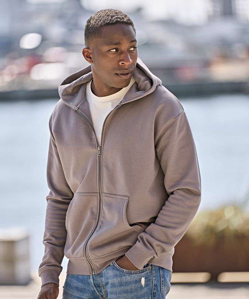 Say hello to timeless comfort in the Urban hooded full-zip sweatshirt – a relaxed classic with an urban edge. Crafted from certified organic cotton and certified recycled polyester, its silicone treatment presents a soft feel and premium quality. Small details include ribs with elastane, an SBS zip, a brushed inside and a half-moon in the neck for easier personalisation. Choose between four promotional colours that embrace the urban lifestyle.